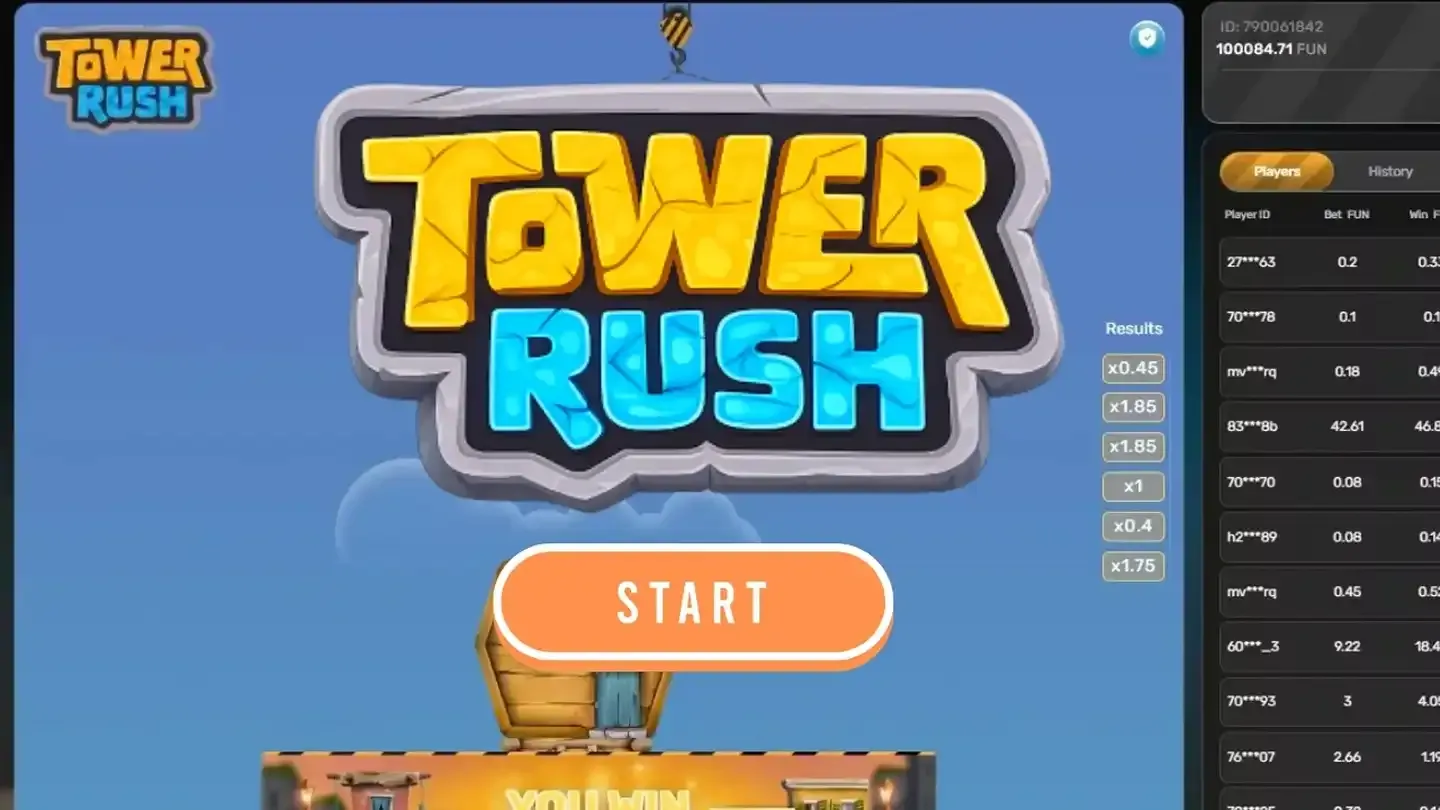 Tower Rush ist ein innovatives Glücksspiel von Galaxsys, bei dem Spieler auf die Höhe eines virtuellen Turms wetten. Das Spielprinzip ist einfach: Sie platzieren Ihren Einsatz und entscheiden, wann Sie aussteigen möchten, bevor der Turm zusammenbricht. Je höher der Turm steigt, desto größer werden Ihre potenziellen Gewinne, aber auch das Risiko steigt entsprechend.